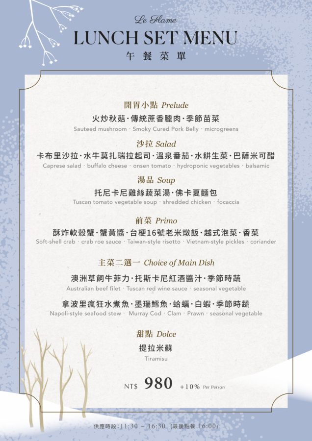午間套餐 (NT$980 + 10%)