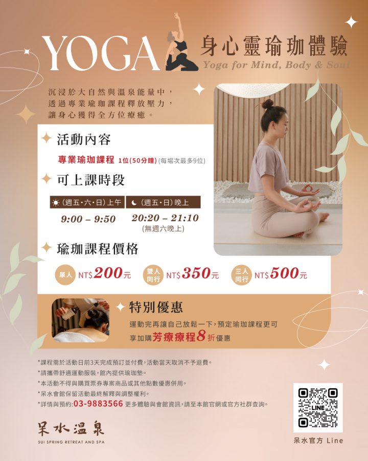 ▍欲知詳情請洽呆水溫泉,專案洽詢預訂專線:+886 3 988 3566、+886 965 014 510